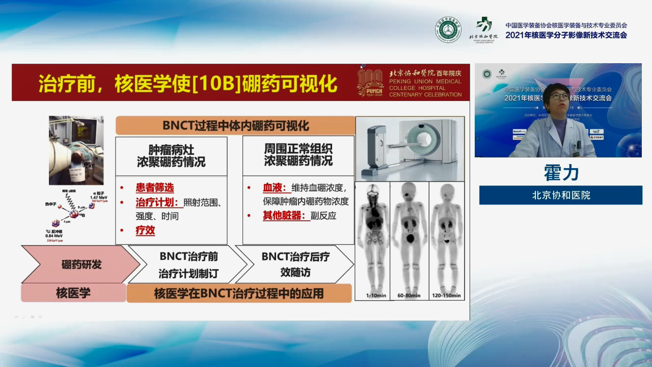 日前,“2021年核醫(yī)學分子影像新技術(shù)交流會”在線上召開。核醫(yī)學領(lǐng)域知名專家會同GE醫(yī)療、西門子、飛利浦、聯(lián)影、中硼醫(yī)療等國內(nèi)外醫(yī)療企業(yè)聚首,共饗醫(yī)學盛宴。中硼醫(yī)療創(chuàng)始人、首席科學家兼CEO劉淵豪教授和北京協(xié)和醫(yī)院核醫(yī)學科主任、中國醫(yī)學裝備協(xié)會核醫(yī)學裝備與技術(shù)專業(yè)委員會副主任委員、博士生導師霍力教授作為大會特邀講者出席本次會議,分別圍繞國內(nèi)外BNCT的發(fā)展現(xiàn)況和核醫(yī)學在BNCT中的角色做了重磅匯報,引發(fā)大會熱烈討論。