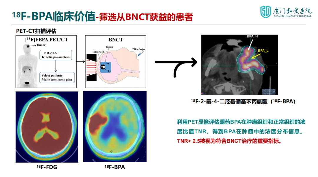 當(dāng)前,隨著BNCT技術(shù)關(guān)注度的持續(xù)提升,大會已連續(xù)多年設(shè)立中子專場。在專題報告中,廈門弘愛醫(yī)院潘建基教授匯報了廈門弘愛醫(yī)院BNCT臨床研究的最新進展,并分析了診斷硼藥18F-BPA在患者篩選與療效評估中的臨床價值。截至2025年10月,廈門弘愛醫(yī)院BNCT中心已完成超70例次受試者治療,整體顯示良好的安全性及療效。